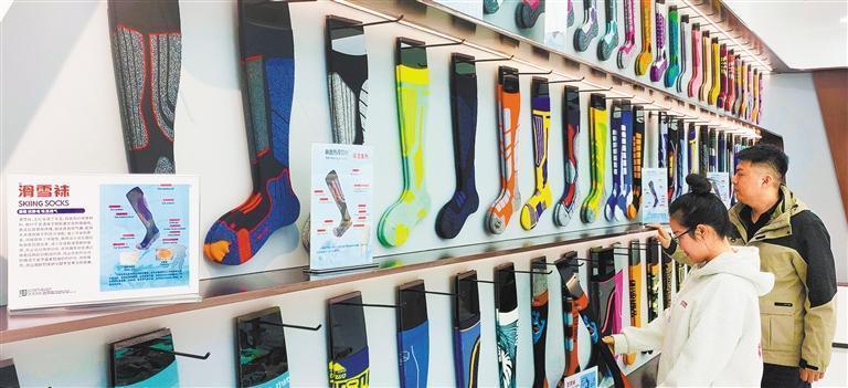 2月17日,辽源市朔方袜业集团织袜公司产物展示大厅,主顾在选购冰雪袜产物。该企业研发的自愿烧冰雪袜曾保险北京冬奥会,备受铺张者嗜好。白春伟摄(中经视觉)