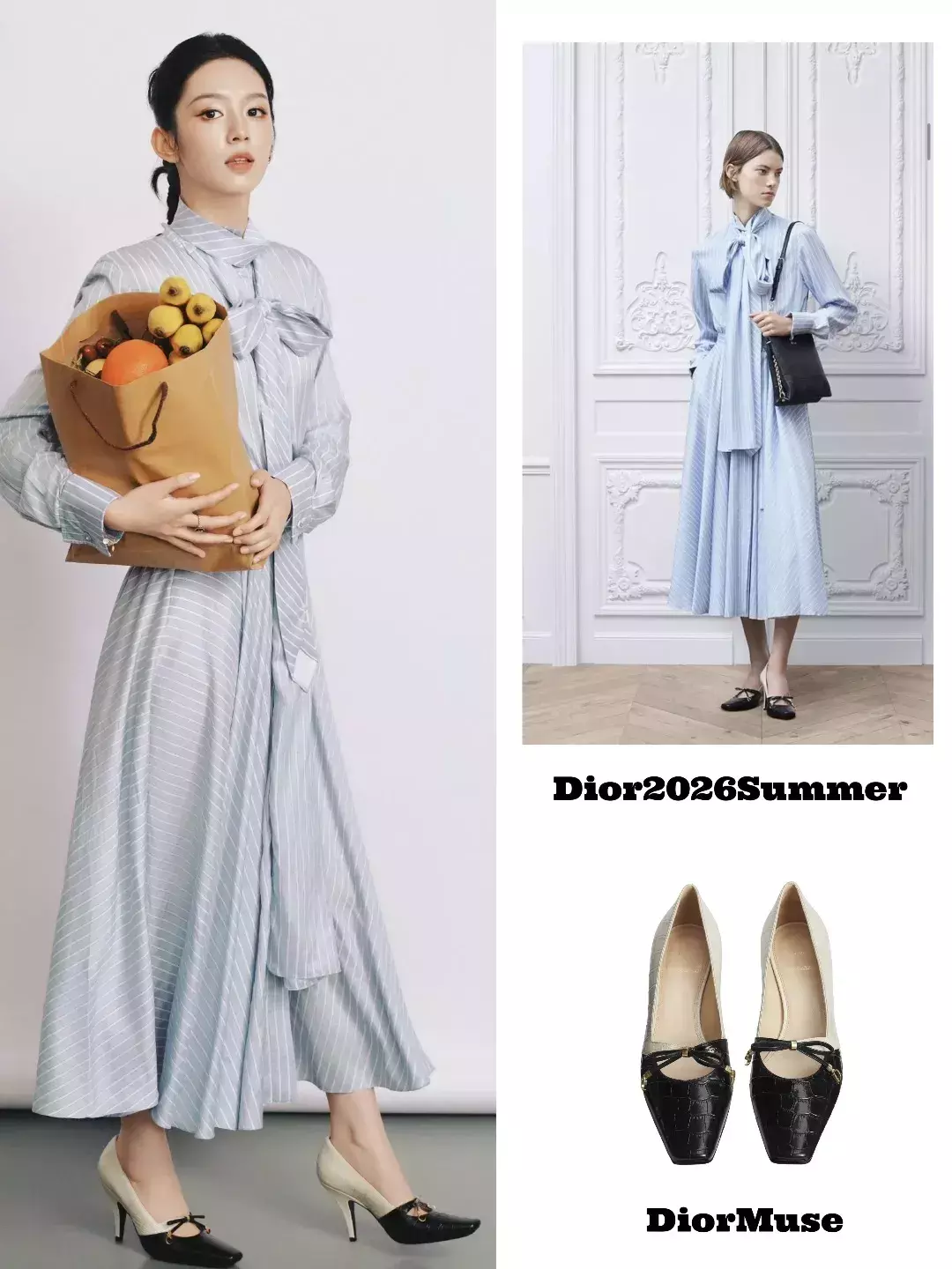 或者望望小S二男儿行动穿搭,她身上的条纹裙子是迪奥委果的品牌大使周也同款,东说念主家2025年就上身了,那时周也不光穿了迪奥的裙子,搭配的珠宝和鞋子齐是迪奥,小S二男儿齐莫得。