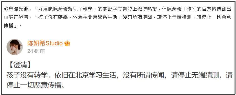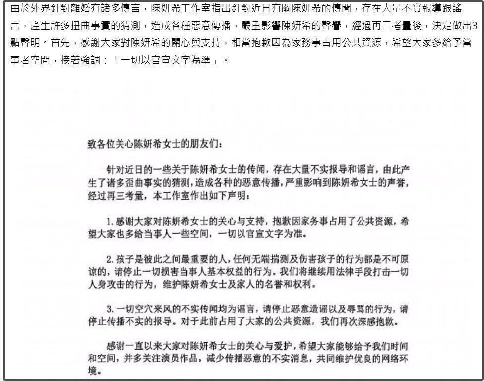 仅仅再怎样意志到双陈婚内就心情不和,比及他们确切离了婚,如故各有各的观点、各有各的态度,陈妍希方两次露面清醒,一次是辟谣出轨外传,一次是辟谣孩子转学台湾省外传,而陈晓则一直千里默。