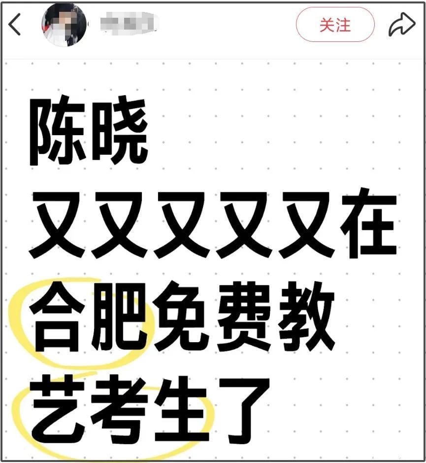 ——陈晓是安徽东说念主,最近不啻一位账号IP定位在安徽的网友自曝见到了陈晓,有音信称他一直在闾阎盘曲格式,免费在艺考机构教孩子演戏。