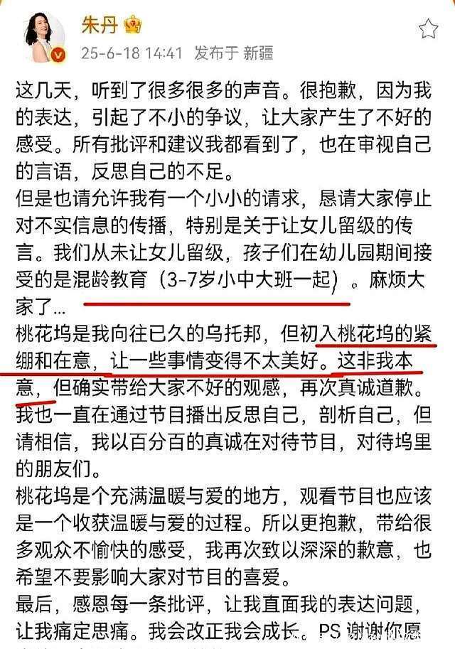 眼看着公论越闹越大,朱丹终于坐不住了,马上发了篇长文说念歉。