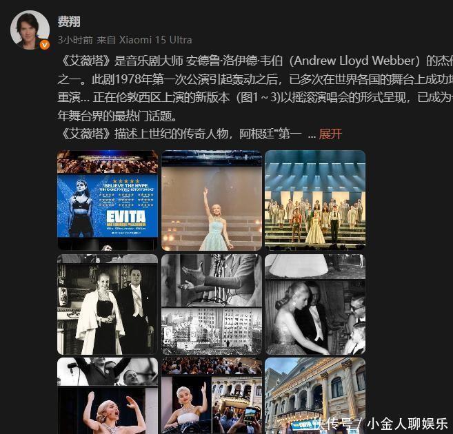 在8月20日,费翔又发了一条动态,《艾薇塔》音乐剧的献艺,在音乐的谈路上,他一直皆在。