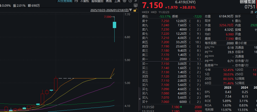 港股创维集团一度大涨逾40%