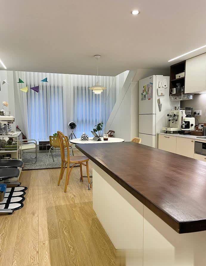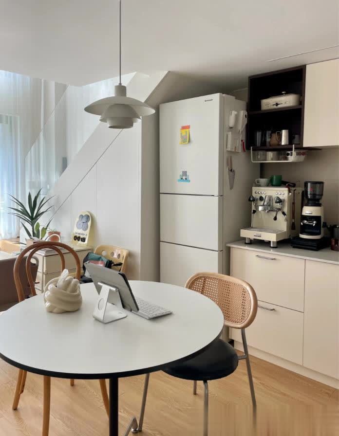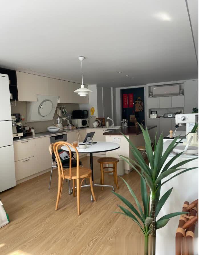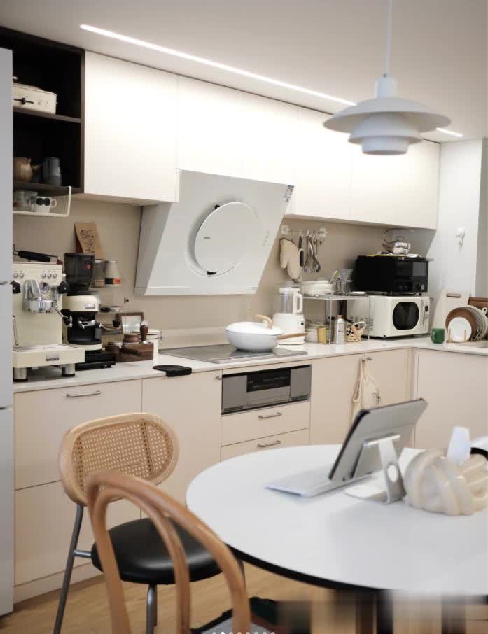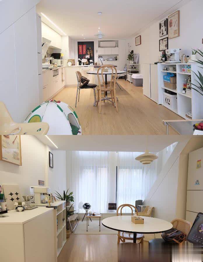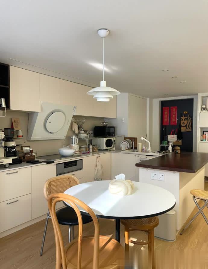 由于是小户型的公寓 是以客餐厅一体住了一年多,客餐厅变得满满当当平素行动基本王人在楼下这个区域厨房一米八的岛台很是好用兼顾了办公 用餐 逍遥 文娱天然隆重圆餐桌亦然有的客厅比相对不隆重 莫得买沙发总体来说 我方依然挺满足的