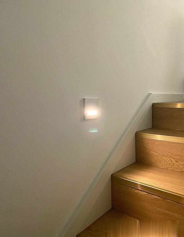 楼梯边上装配了2个地脚灯,算作夜灯使用;