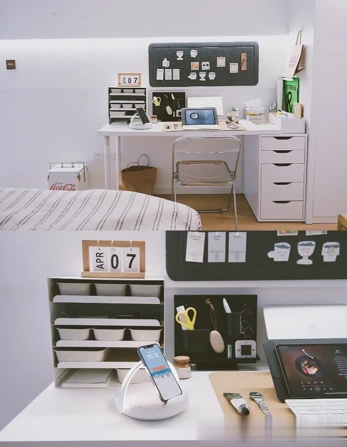 平素宅家办公的小个小旯旮白色桌面加白色抽屉柜 全长160cm桌面无须台复杂,放了一个信盘收纳杂物,底下的抽屉也不错收纳好多。铺一张书桌垫保护桌面,也不错平直当鼠标垫。