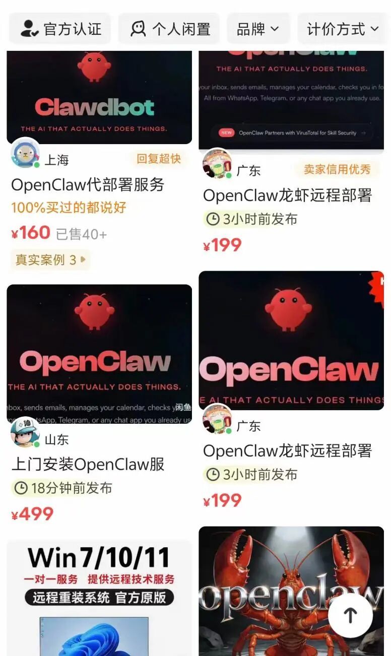 那些紧急逸想着装置它的用户,俗称“养虾东说念主”。近日,在闲鱼、小红书上,出现了多数“上门装置龙虾”的付费就业,开价广大在几十元到几百元之间。