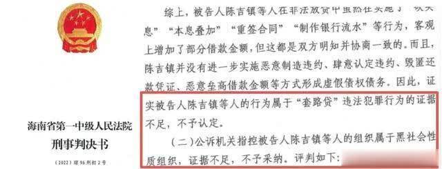 判决书中明确写着,公诉机关指控被告东谈主陈吉镇等东谈主的行径属于“套路贷”犯法犯法行径的笔据不及,不予认定;公诉机关指控被告东谈主陈吉镇等东谈主的组织属于黑社会性质组织,笔据不及,不予选择。