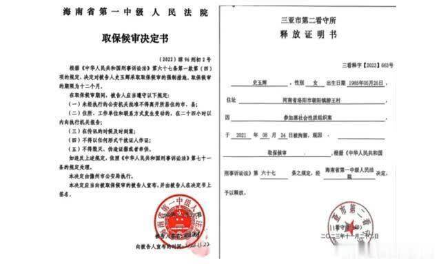 2023年,在看管所依然被羁押了两年多的史玉辉向审理此案的海南省第一中级东谈主民法院写了呈文信,之后,法院作出了取保候审决定,2023年10月23日,史玉辉被三亚市第二看管所开释,此时距她被逮捕整整821天。